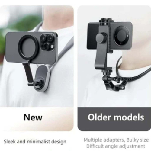 هولدر گردنی mnm-001-n1 ورژن جدید هولدرهای گردنی میباشد که تمام احتیاجات شما را برای گرفتن فیلم سلفی و یا تولید محتوا برطرف میسازد.بدنه از جنس سیلیکون فشرده میباشد که داخل آن فنر بسیار با کیفیت کار شده است.هنگام کار با این هولدر دستان شما آزاد میباشد و براحتی میتوانید مدیریت صحنه خوبی داشته باشید.هولدر یک حلقه مگنتی بسیار قوی دارو که نگهداری گوشی سنگین هم براحتی انجام میگردد.شما با خریداری یک قاب مگسیف دار و یا استفاده از حلقه آهنربای هولدر میتوانید از این وسیله استفاده لازم را ببرید