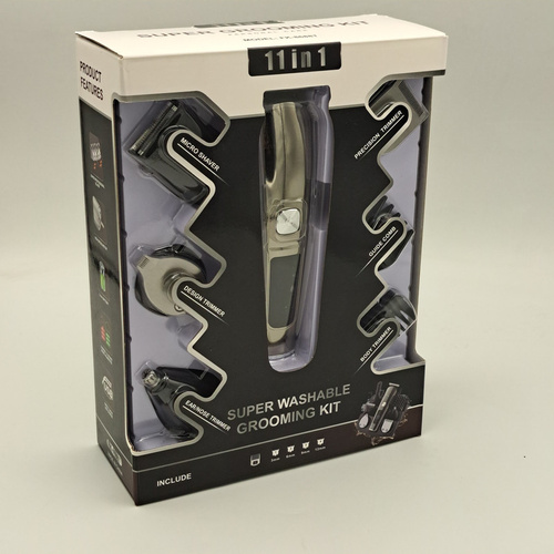 ماشین اصلاح FK-8688 یک مجموعهی کامل برای اصلاح سر و صورت و بدن است که در مجموع از شش سری مختلف برخوردار است. میتوانید بسته به نوع موضع اصلاح، از سریهای مختلف دستگاه استفاده کنید. اصلیترین سری ماشین اصلاح یک تریمر عریض است که برای اصلاح سر و صورت کاربرد دارد. پس از استفاده از این سری میتوان به کمک تریمر باریکتر، ریش و سبیل را مرتب کرد. بهعلاوه سری بزرگتری برای اصلاح موهای بدن در نظر گرفته شده است. موزن بینی و گوش هم این مجموعه را تکمیل کرده تا دیگر نیازی به تهیهی یک دستگاه مجزا نداشته باشید. این موزن با برش چرخشی امکان اصلاح سریع و بیخطر موهای زائد را فراهم کرده است. از شش شانهای که به همراه این ست اصلاح ارائه شده، یک شانهی تهریش متغییر (8تا 1 میلیمتر)، یک شانهی قابل تنظیم ریش (7،3 میلیمتر)، چهار شانهی مو (3 ،6 12 ،9 میلیمتر) هستند. شارژ کامل FK-8688 یک و نیم ساعت طول میکشد و در حالت فولشارژ، دستگاه میتواند تا 90 دقیقه کار کند. ست FK-8688 مدل دستگاهی بسیار کاربردی با قابلیتهای عالی است که میتواند نیازهای مربوط به اصلاح آقایان را کاملا برطرف کند. این دستگاه با باتری قدرتمند و مقاومت در برابر آب میتواند برای آقایان گزینهای ایدهآل باشد.