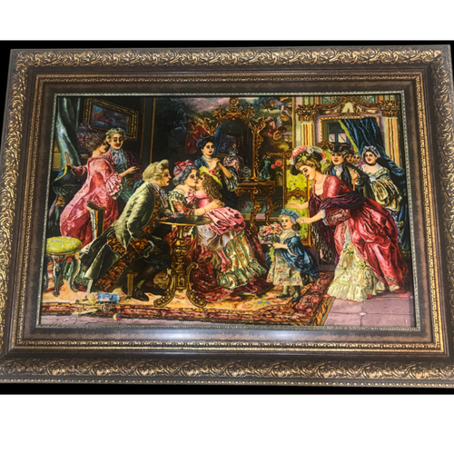 تابلوفرش دستبافت تبریز فرانسویی زمینه کرک وابریشم 55رج باقاب پی وی سی