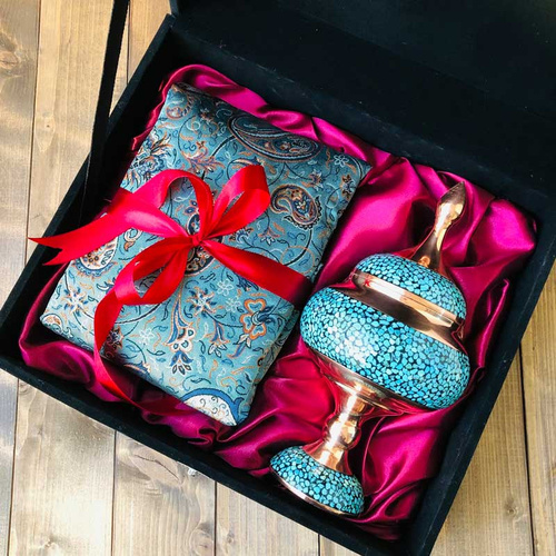علاوه بر زیبایی که احتمالا اولین دلیل برای خرید این ظروف در ذهن ماست، از تاثیرات روانشناسی آنها نیز نمیتوان غافل شد. از گذشتههای دور سنگ فیروزه به عنوان یکی از منابع آرامبخش معرفی شده است. حتی در برخی از مناطق از فیروزه به عنوان سنگ مقدس یاد میشود. عدهای بر این باورند که همراه داشتن این سنگ میتواند انرژیهای منفی را از آنها دور کند. بسیاری از افرادی که در زمینه روانشناسی یا یوگا فعالیت میکنند، فیروزه را یکی از عوامل تقویت کننده چاکرای پنجم بدن معرفی کردهاند. این افراد معتقدند که نوشیدن آب در ظروف فیروزه کوبی یا استفاده از آن در دکور منزل نقش موثری را در تقویت قدرت ذهن دارد. اگرچه بسیاری از این موارد از نظر علمی ثابت نشده اما افراد زیادی به آن معتقدند. تصمیم گیری در مورد واقعیت یا عدم واقعیت این اثرات را به عهده خود شما میگذاریم. ترمه چیست؟ ترمه نوع لطیفی از پارچه است که تار و پود آن با ظرافت بسیار زیادی به هم پیوند خورده و گاهاً با نقوش ایرانی اصالت کم نظیری پیدا کرده است. یزد و اصفهان پایگاه پارچه ترمه هستند. امروزه آوازه این صنایع دستی ایران به آن سوی جهان رسیده و عموم گردشگران خارجی در سفر به ایران، ترمه یزد یا ترمه اصفهان را به عنوان سوغات برای دوستان و آشنایان خود انتخاب میکنند. ترمه حال و هوایی سنتی به محل زندگی و کار شما میدهد. به راحتی با محیط ست میشود و هدیهای ماندگار و ارزشمند برای عزیزانتان است.