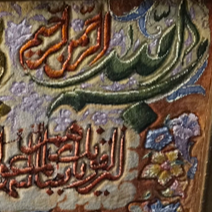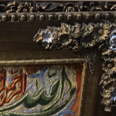 تابلوفرش دستبافت تبریز وان یکاد خط نستعلیق زمینه کرک وابریشم چله ابریشم زمینه رنگ آجری 60رج باقاب چوبی نفیس