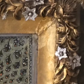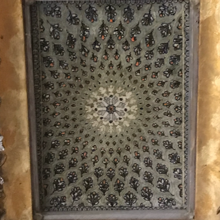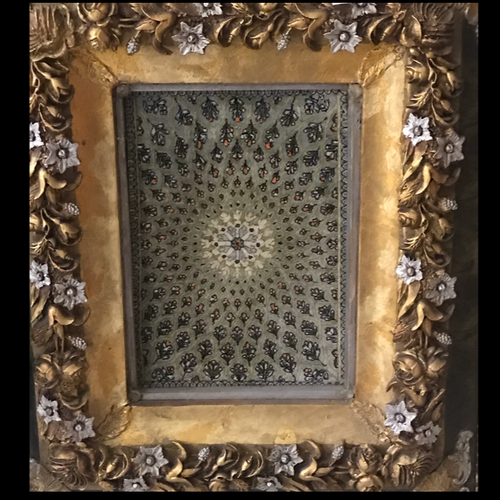 تابلوفرش دستبافت گنبدی قم تمام ابریشم چله ابریشم 70رج باقاب چوبی نفیس گلباران ورق طلا