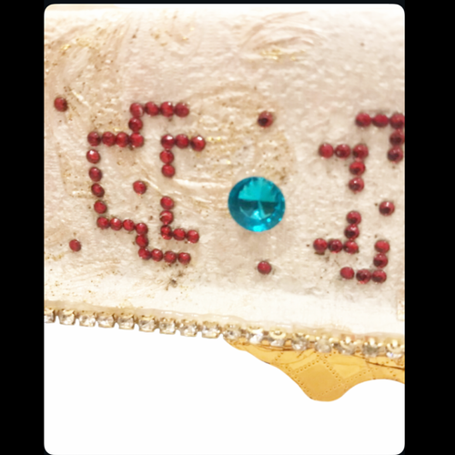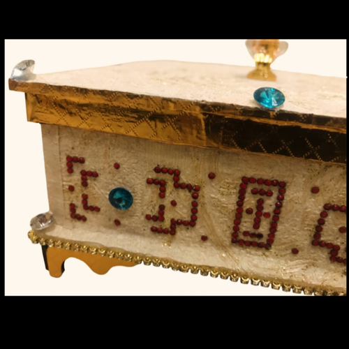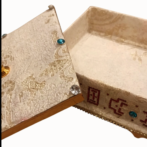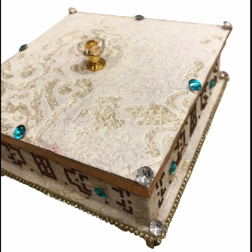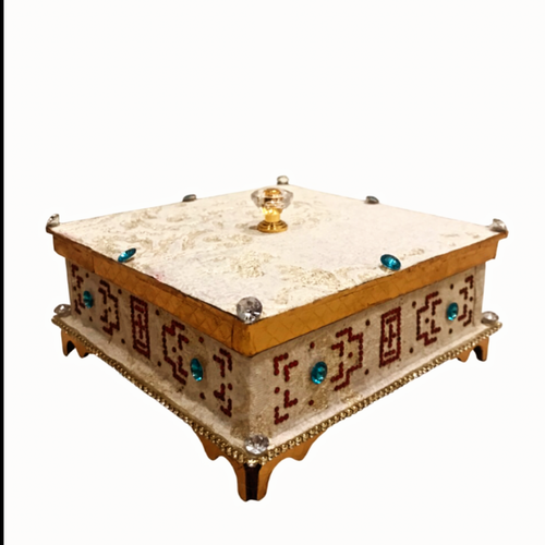 جعبه جواهر طرح چینی کاردست مربع زیرکار باچوب روکش ورق طلا دورتادور نگین کریستالی