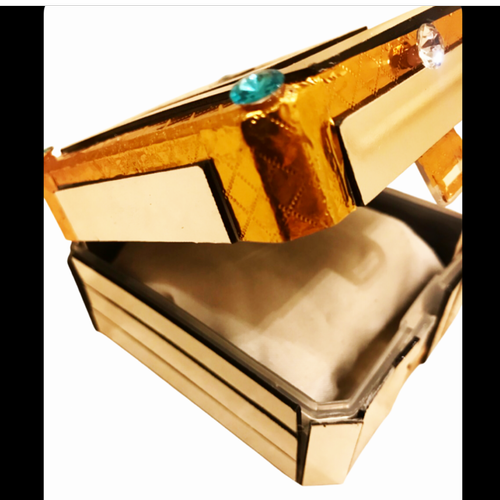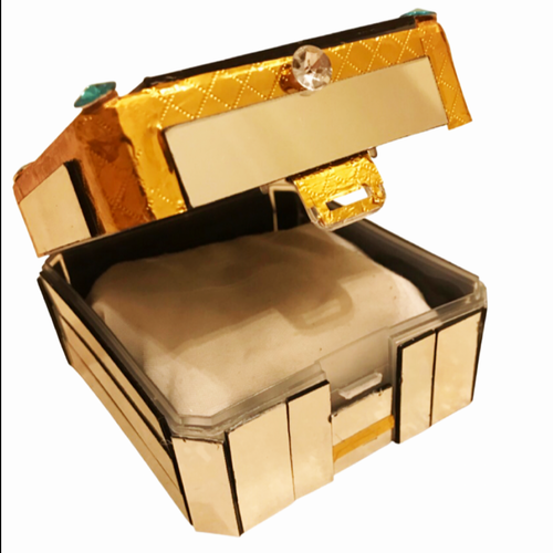 جعبه جواهر ویاجاساعتی شیک زیرکارپلاستیک فشرده روی کارآینه وورق طلا ونگین کریستالی