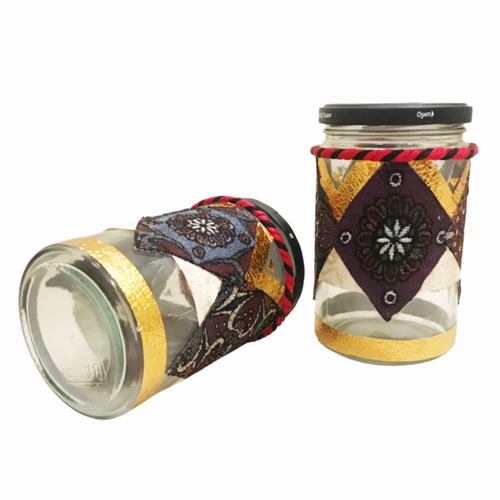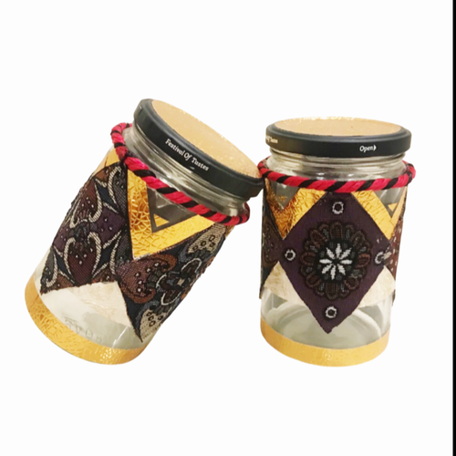 شیشه حبوبات جفت زیرکار شیشه روکش ترمه وورق طلا شیک