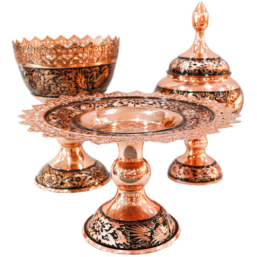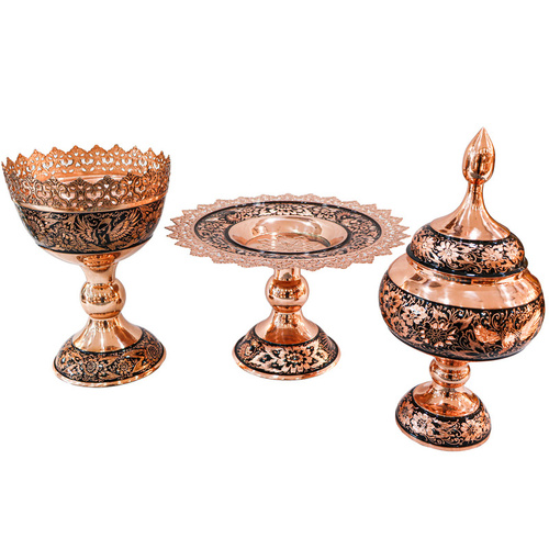 ست 3 تکه پذیرایی مسی مدل الماس تراش کد 373430half