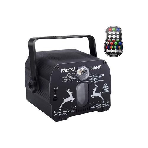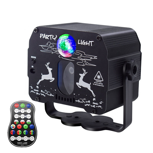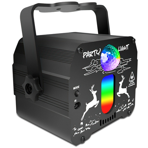 رقص نور پارتی لایت مدل DEER یکی دیگر از پرفروشترین رقص نورهای PARTY LIGHT میباشد این رقص نور دارای یک لامپ ال ای دی RGB هفت رنگ با قابلیت تعویض رنگ خودکار و دو لیزر سبز و آبی میباشد که بیش از 48 تم زیبا از جمله گل و ماه و ستاره و درخت کریسمس و رد باکس ملودی و قلب و بادکنک و غیره ایجاد میکند که دارای یک CPU قوی و یک ریموت 24 کلیده که میتوانید با ریموت رنگ ها را یکی یکی تنظیم کرده و یا زمان بندی برای رقص نور تنظیم کنید رقص نور DEER با سایز کوچک آن قابلیت نصب در همه مکان ها را دارد و میتواند یک محیط 80 متری را پوشش دهد بدنه رقص نور از فلز آلومینیوم بوده و در قسمت جلو دارای یک سنسور IR جهت دریافت فرمان از ریموت و یک کلید MODE جهت تنظیم رقص نور به صورت دستی و در قسمت پشت دارای میکروفون تشخیص صدا SOUND ACTIVE که یکی از گزینه های واج برای رقص نورهای حرف ایی میباشد که میتواند رنگ نورها را با صدای موزیک هاهنگ کند و دارای یک کلید خاموش و روشن و سوکت جهت اتصال به کابل میباشد دقت کنید رقص نور DEER فاقد اداپتور بوده و میتوانید از تمامی اداپتورهای موبایل و تبلت و یا پاوربانک جهت تغذیه از آن استفاده کنید در بسته بندی رقص نور یک پایه نگهدارنده جهت اتصال به دیوار و یا سقف یک دفترچه راهنمای لاتین و یک کابل دومتری وجود دارد