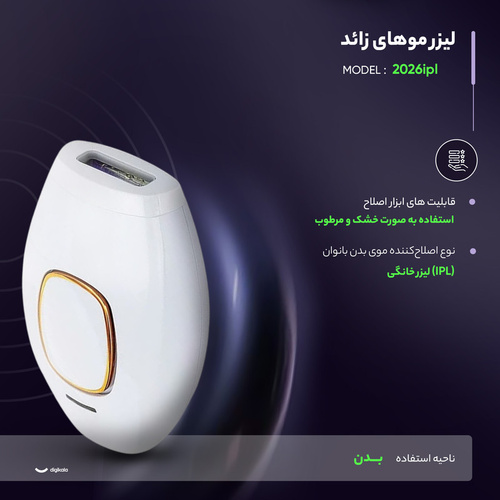 لیزر موهای زائد مدل 2026 IPL یک دستگاه خانگی کارآمد است که با استفاده از فناوری IPL، رشد موهای بدن و صورت را به‌صورت تدریجی کاهش می‌دهد و در صورت استفاده‌ی منظم، نتایج ماندگارتری ایجاد می‌کند. بدنه‌ی دستگاه از جنس ABS مقاوم در برابر آب ساخته شده و طراحی سبک و ارگونومیک آن باعث می‌شود هنگام استفاده، کنترل و راحتی بیشتری فراهم شود. این مدل امکان استفاده به‌صورت خشک و مرطوب را دارد و با اتصال مستقیم به برق، انرژی مورد نیاز خود را تأمین می‌کند. نواحی هدف شامل بدن و صورت هستند و سری مخصوص بدن پوشش یکنواختی در مناطق مختلف ایجاد می‌کند. در بسته‌بندی محصول، دفترچه راهنما، ژیلت، عینک ایمنی و آداپتور قرار گرفته تا مجموعه‌ای کامل برای استفاده‌ی خانگی در اختیار کاربر باشد. در مجموع، مدل 2026 IPL با ترکیب طراحی مقاوم، ایمنی بالا و عملکرد مؤثر، انتخابی مطمئن برای حذف موهای زائد در منزل محسوب می‌شود.