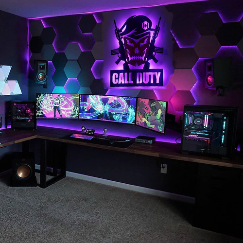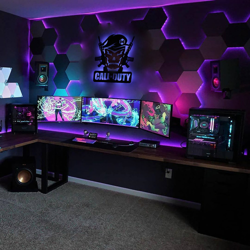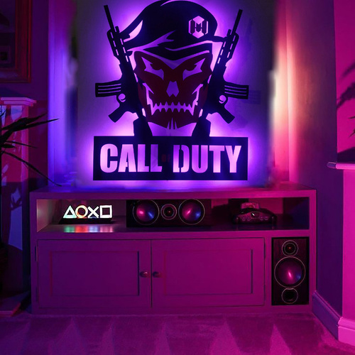 یک چراغ دیواری منحصر به فرد برای فضای اتاق های گیمینگ و اتاق نوجوان این چراغ دیواری که طراحی بازی محبوب کالاف دیوتی می باشد در سراسر دنیا طرفداران ویژه ای دارد و دارای کنترل از راه دور 16 رنگ می باشد که شما می توانید به وسیله ی کنترل در 4 حالت رقص نور جذاب تنظیم کنید و یا اینکه در حالت تک رنگ قرار دهید نصب این شب خواب بسیار آسان بوده و به وسیله ی یک میخ به دیوار متصل می شود که و از طریق آدابتور 12 ولت فوص کم مصرف آن را به پریز برق متصل کنید این آدابتور دارای سیم بلند 2 متری می باشد که کاربری آن را آسان می کند همچنین این شب خواب جذاب دارای 44 عدد ال ای دی بلوکی پر نور می باشد که میتوانید به وسیله کنترل شدت نور آن را تنظیم کنید