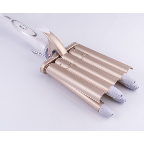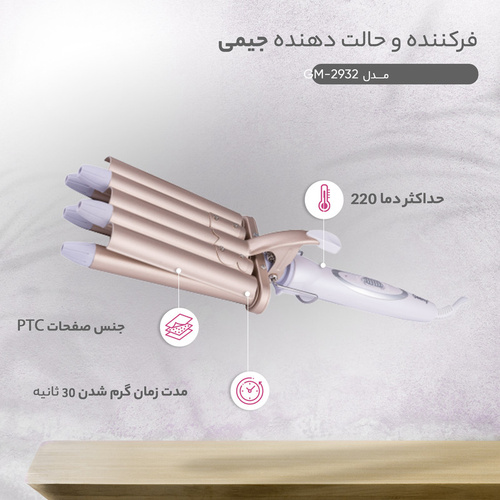 برای فر کردن و یا حالت دار کردن موها امروزه روش ها و ابزار های زیادی در دسترس خانوم هایی که به زیبایی موهای خود اهمیت می دهند وجود دارد اما از بین این روش ها فر کن های میله ایی که علاوه بر فر کردن می توانند موها را موج دار کنند از جایگاه به خصوصی برخوردار هستند. حالت دهنده ی موی جیمی مدلGM-2932 یکی از این ابزار هاست که با داشتن طراحی منحصر به فرد خود در سریع ترین زمان ممکن موها را مجعد و یا فر دار به صورت فر ریز و درشت در می آورد. این محصول از 5 عدد میله مجزا تشکیل شده که سه تای آنها در قسمت زیرین به صورت مستقل و دوتای دیگر به صورت چسبیده به یک صفحه موجدار قرار گرفته اند. با فشار دادن اهرمی که در قسمت ابتدایی این صفحه موجدار قرار گرفته شما می توانید زاویه ی آن را متناسب با مدل موی دلخواه خود تنظیم کنید. این حالت دهنده دارای سیستم گرمایش سریع یا PTC است و در کمترین زمان ممکن گرم می شود و دارای محدوده دمایی بین 170 تا 220 درجه سانتی گراد است. این محصول همچنین دارای نوک سرد است که در صورت تماس با سر و صورت به شما آسیبی نمی رساند. دسته تنظیم کننده صفحه و چرخش 360 درجه انتهایی سیم از دیگر مزایای این حالت دهنده مو می باشد.